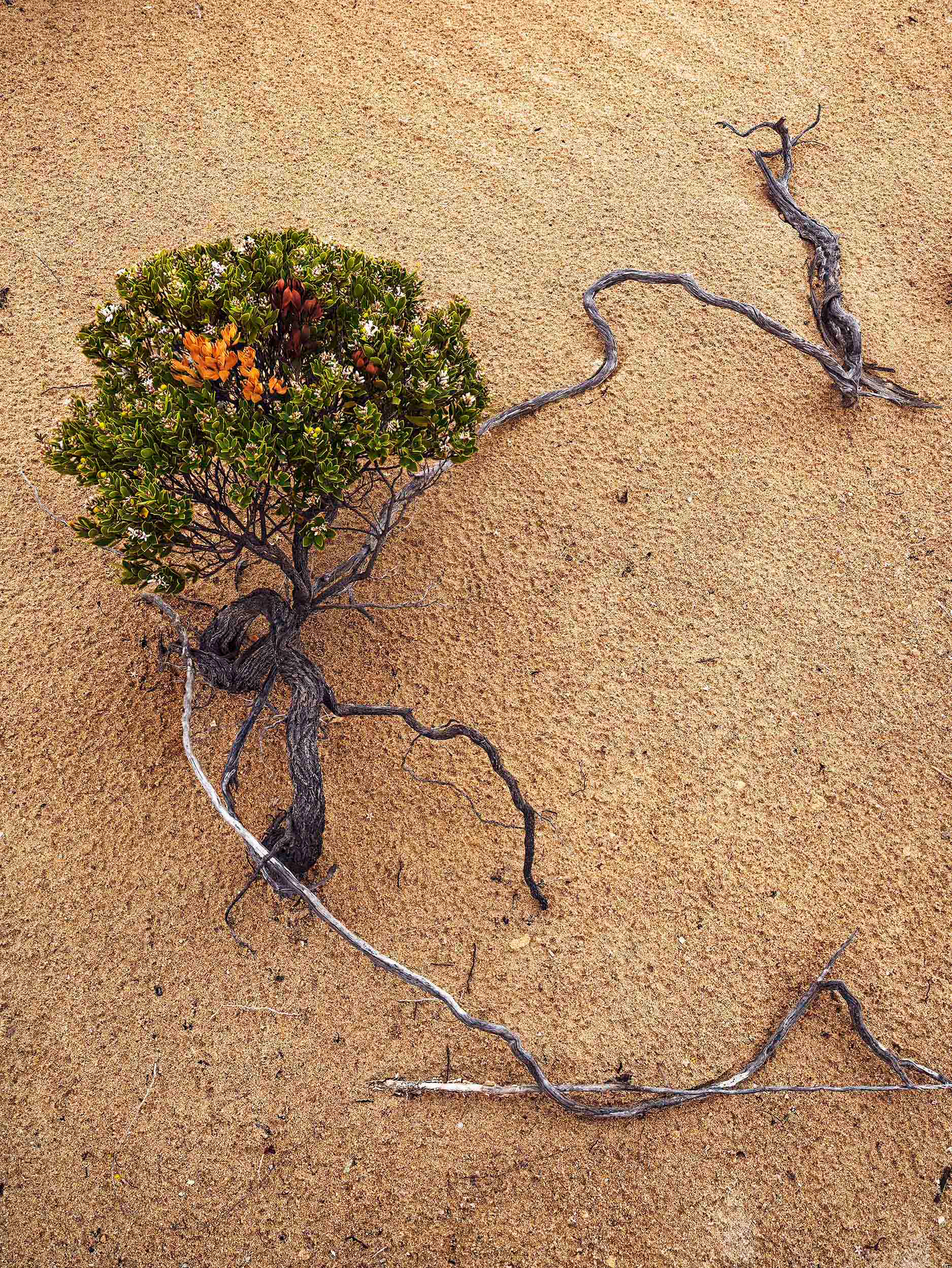 Cushion Bush (Leucophyta brownii) finds its niche along the rugged coast of Eyre Penisula